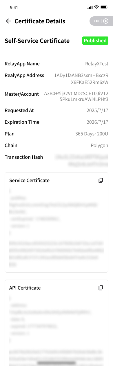 Self Service Certificate Details